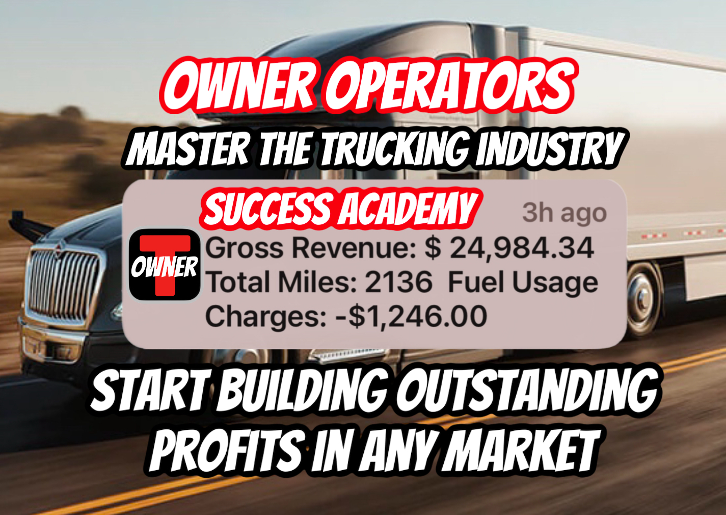 - OWNER OPERATORS APP; Now explain, how our AI-powered systems were built from behind the wheel and have been tested and proven for over 10 years to fit—and fix—any operation turning it into a profit building machine in any market.
